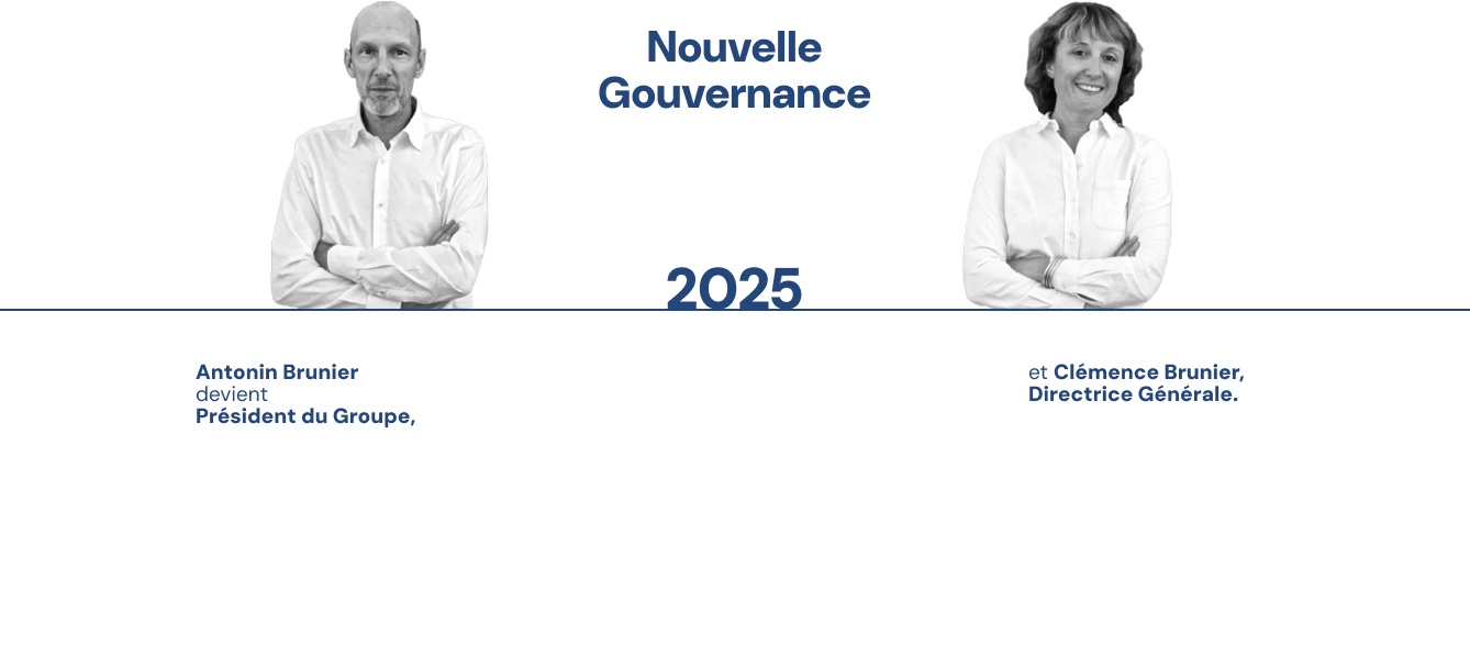 Antonin Brunier devient Président du Groupe, et Clémence Brunier, Directrice Générale.